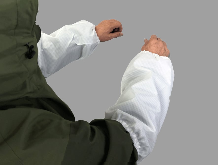 ナイロン素材の白色腕抜き。